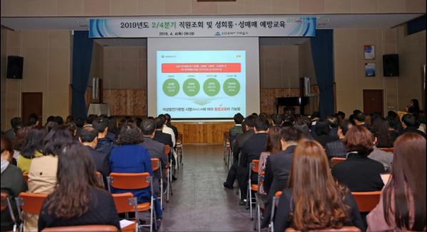 교육은 한국성희롱예방센터 소속 이영희 강사가 맡아 직장 내 성희롱·성폭력에 대한 다양한 사례 및 대처방안, 사전 예방 등에 대한 내용으로 진행했다.