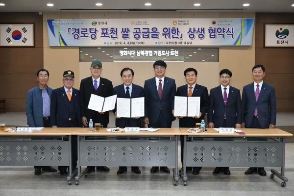 포천시는 경로당에 포천 쌀 공급 상생 협약을 지난 4일 시청 대회의실에서 포천시, 농협중앙회 포천시지부 및 7개 지역농협이 참여한 가운데 실시했다.