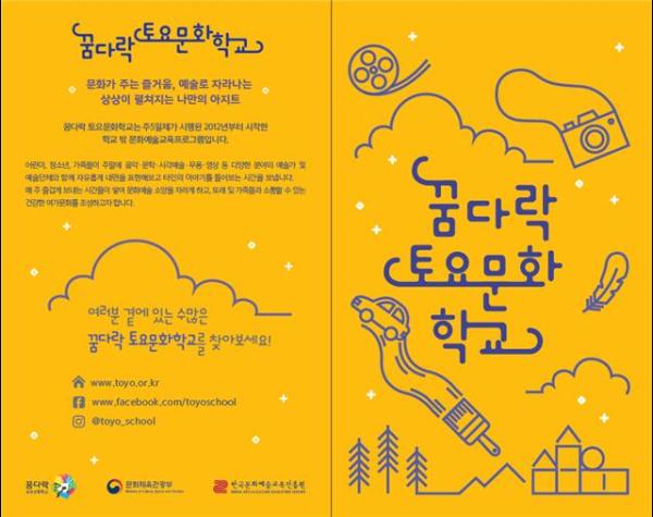 ‘꿈다락 토요문화학교’는 아동·청소년과 가족이 함께 참여해 자유롭고 즐겁게 소통하는 학교 밖 문화예술교육 프로그램이다. 건전한 주말여가문화를 만들고, 문화예술 체험 기회를 확대하기 위해 2012년부터 시작됐으며, 미술, 음악, 건축 등 다양한 분야의 프로그램을 박물관, 도서관, 문예회관 등의 시설에서 진행한다.