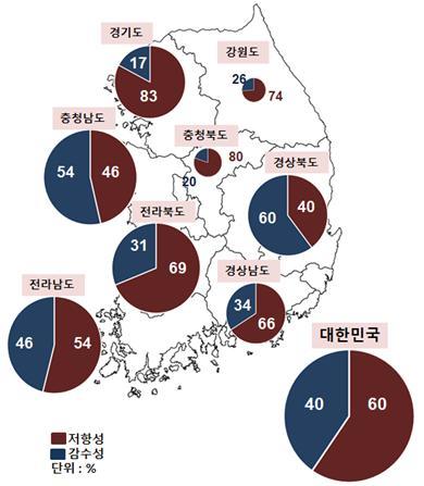2017년과 2018년 전국 제초제 저항성 논잡초 발생 면적을 조사한 결과, 국내 총 논 면적의 59.6%에서 최소 1종 이상의 제초제 저항성 논잡초가 발생하는 것을 확인했다. 이는 2012년에 비해 약 2.7배 증가한 것이다.