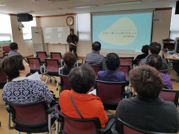 설명회는 금창동 쇠뿔고개 주변의 원도심 활성화 및 주거환경 개선을 위한 더불어마을 사업 추진에 앞서 주민설명회를 개최해 도시재생 사업에 대한 공감대 형성과 의견을 수렴하기 위해 마련됐다.