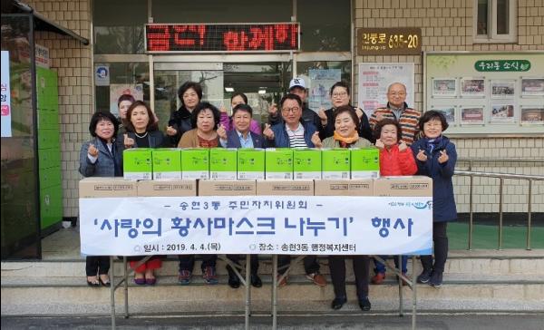 인천 동구 송현3동은 지난 4일, 주민자치위원회의 저소득 취약계층을 위한 황사마스크 전달식을 개최했다.
