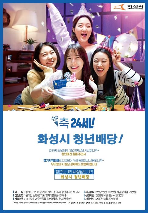 화성시가 경기도내에 3년 이상 주민등록을 두고 화성시에 계속 거주한 만 24세 청년에게 연간 100만 원을 지원한다.