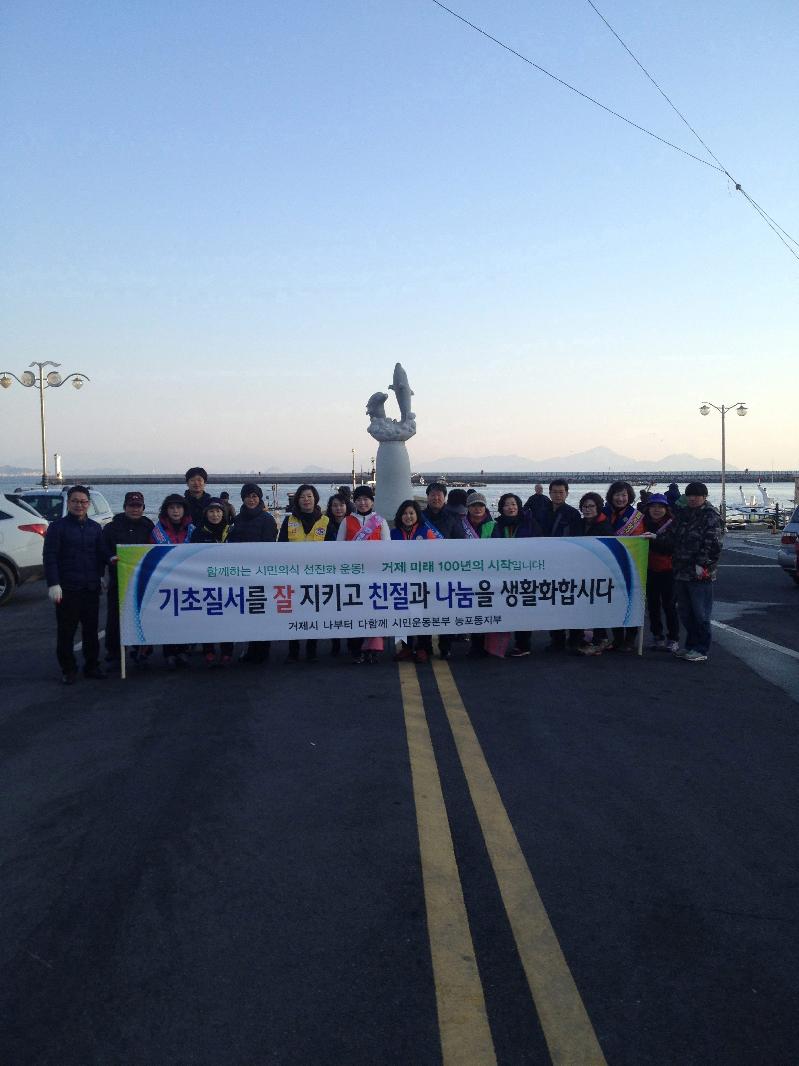 능포동 물양장 일원에서 이루어진 이 날 행사에는 거제시 나부터 다함께 시민운동본부 능포동지부(지부장 김주근), 통장협의회 회원 등 40여명이 참석하여 시민의식 선진화 홍보 및 깨끗한 능포동 만들기에 구슬땀을 흘렸다.