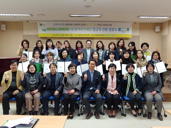 특히, 사회복지관련 영역에서는 전국 최초로 사회복지시설 직무관련 비정규직 정규직 전환 사례가 됐다.