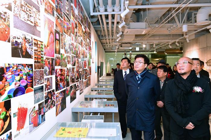 | 염태영 수원시장이 작품을 감상하고 있다. |