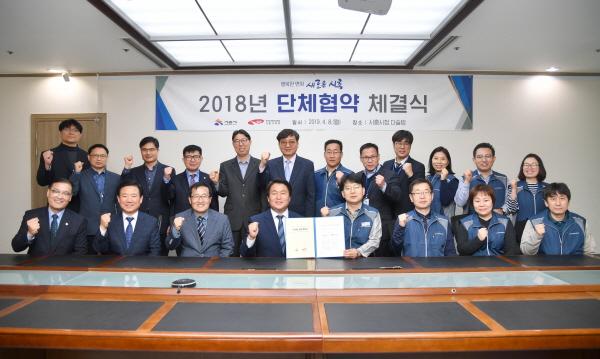 시흥시와 전국공무원노동조합 시흥시지부는 지난 8일 시흥시청 다슬방에서 ‘2018년 공무원 노사 단체협약 체결식’을 열고, 시민에게 사랑받는 공직문화 정착을 위한 노사협력과 지속적인 노력을 다짐했다.
