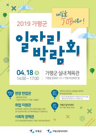 가평군은 오는 18일 가평실내체육관에서 ‘일자리 박람회’를 개최해 취업의 기회를 제공하고 우수인재 채용의 장을 마련키로 했다.