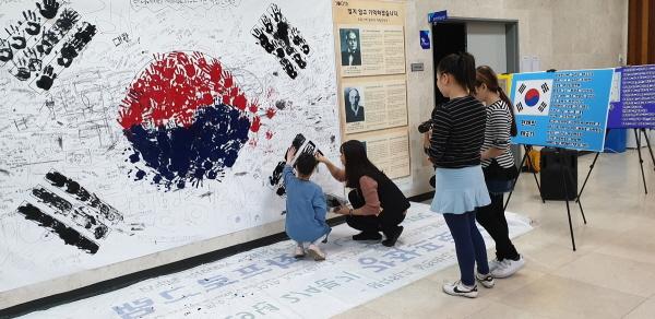 이와 함께 지난달 30일에는 ‘우리의 손도장으로 완성하는 대형 태극기’라는 주제로 청소년수련관 동아리 소속 청소년뿐만 아니라 일반 시민들도 함께 참여하도록 프로그램을 진행, 태극기 제작 퍼포먼스를 펼쳤다.