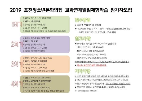 포천시 포천청소년문화의집은 교과연계일일체험학습 체험활동에 참가할 청소년을 모집한다고 밝혔다.