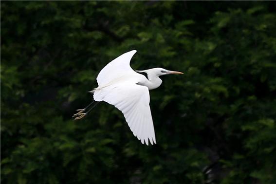 백로과 여름철새인 노랑부리백로는 몸은 흰색이고, 부리와 발이 노란색이다.