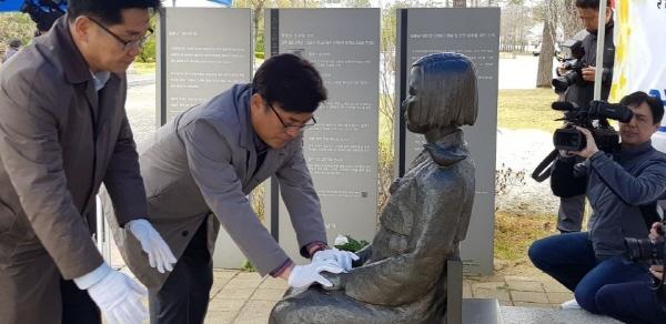 경기도의회 경제과학기술위원회 조광주 위원장, 문화체육관광위원회 최만식 의원은 10일 성남시청 광장 ‘평화의 소녀의 상’앞에서 일본군 ‘위안부’ 피해자 할머님들의 아픔을 기리고 시민들의 관심을 환기시키고자 ‘평화의 소녀상’ 건립 5주기 기념식 행사에 참석했다.