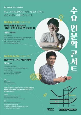 경기도와 경기도경제과학진흥원은 오는 17일을 시작으로 11월까지 격주로 수요일 저녁마다 판교 스타트업캠퍼스 1층 콘퍼런스홀에서 ‘2019 수요 인문학 콘서트’를 개최한다고 11일 밝혔다.