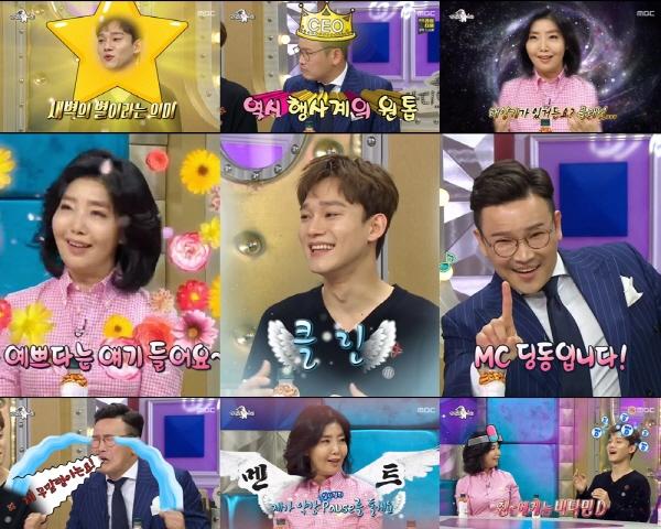 지난 10일 방송된 고품격 토크쇼 MBC ‘라디오스타’는 ‘여긴 내 구역인데예~?’ 특집으로 여에스더, 첸, MC 딩동이 출연해 각 분야별 톱들이 펼치는 거침없는 토크 전쟁을 선보였다. 이날 스페셜 MC로는 하하가 참여했다.