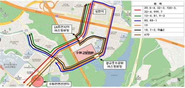 수원시 관계자는 “버스 노선별 실시간 운행상황을 스마트폰 앱, 버스정류장의 버스정보시스템 등으로 시민들에게 안내하고 있다”면서 “법조타운과 컨벤션센터를 이용하는 시민들의 불편이 없도록 지속해서 교통대책을 마련하겠다”고 말했다.