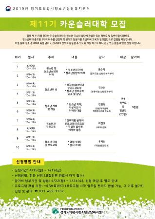 의왕시청소년상담복지센터는 청소년 이슈와 상담에 관심있는 학부모 및 일반인을 대상으로 제11기 카운슬러대학 수강생을 모집한다.