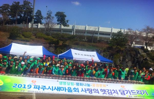 파주시 새마을회는 지난 11일 파주스타디움에서 ‘사랑의 햇김치 담그기’ 행사를 개최해 사랑과 정성이 담긴 햇김치 800통을 독거노인, 장애인 등 사회 소외계층에 전달했다.