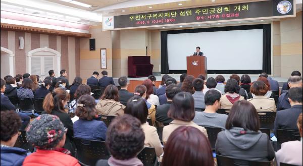 인천 서구는 지난 10일, 서구청 대회의실에서 주민 100여명이 참석한 가운데 인천서구복지재단 설립 주민의견수렴을 위한 공청회를 개최했다고 밝혔다.