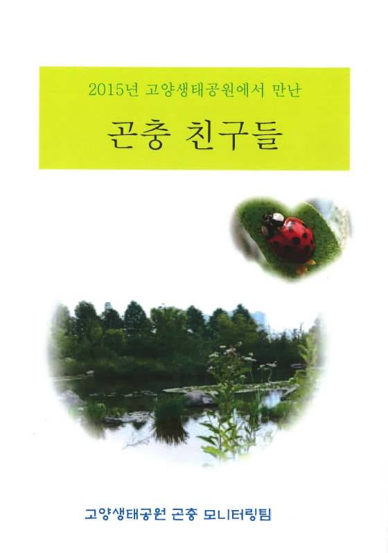 곤충 모니터링 자료집은 고양생태공원의 생태적 가치와 중요성을 알리고 지속적인 모니터링 활동을 위한 기초자료를 구축하기 위해 생태공원 자원봉사자들이 자율적으로 모니터링을 실시 제작한 자료집이다.
