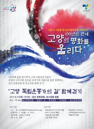 고양시가 2019년 3.1운동 및 대한민국 임시정부 수립 100주년을 기념해 ‘고양 독립운동가의 길 함께 걷기’를 개최한다.