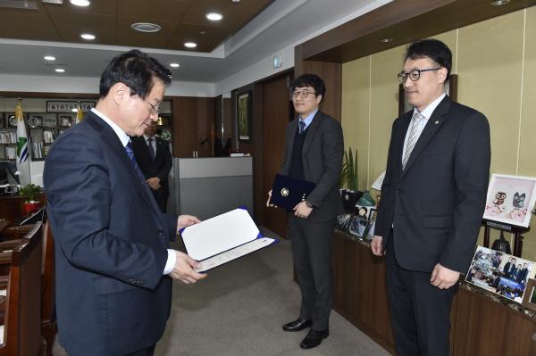 원주시는 지난 11일 무료 생활법률 상담관 3명을 새로 위촉하고 위촉장을 전달했다.