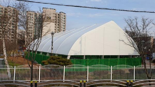 김포시는 생활권 야외 체육시설의 시민 이용편의를 개선하기 위해 고촌읍과 장기본동 공원녹지에 위치한 기존 다목적구장에 지붕막구조물 설치를 완료했다고 밝혔다.