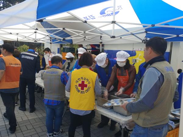 이날 사랑의 밥차 배식 봉사에는 김포시여성단체협의회 회원과 자원봉사자 100여명 및 김포시의회 오강현 시의원 및 이진관 고촌읍장이 참석해 밥차를 찾은 어르신들에게 따뜻한 한 끼 식사를 제공해 이웃사랑을 몸소 실천했다.