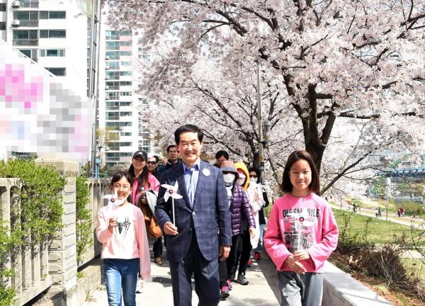 의정부시는 지난 13일, 벚꽃이 만개한 중랑천변에서 시민이 함께하는 건강한 사회 만들기 일환으로 5,000여 명이 참여한 가운데 대한민국임시정부 수립 100주년 기념 ‘2019 한마음 걷기 대회’를 개최했다.