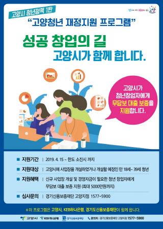 고양청년 재정지원 프로그램은 고양시와 KEB하나은행이 경기신용보증재단에 출연해 총 200억 원으로 조성된 청년창업지원자금으로 고양시 창업 청년에게 최대 5천만 원까지 무보증 신용 지원한다.