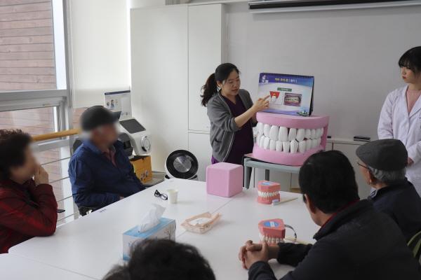 특히 치주질환이 가장 많이 발생하는 치매어르신들에게 치아모형을 활용한 잇솔질 실습을 통해 노인 치주질환 예방을 위한 맞춤형 교육을 실시해 구강관리의 중요성을 강조했다.