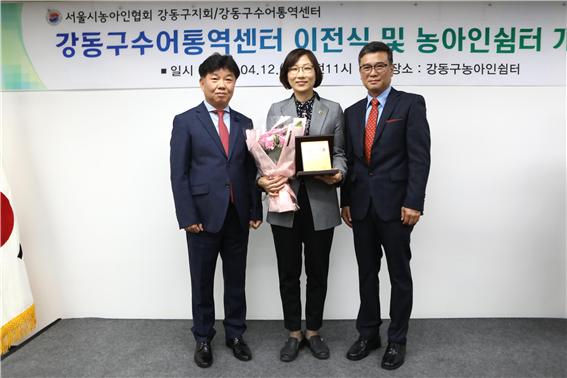송명화 서울시의원은 지난 12일 강동구농아인쉼터에서 열린 ‘강동구수어통역센터 이전식 및 농아인쉼터 개소식’에서 서울특별시농아인협회장으로부터 감사패를 수여받았다.