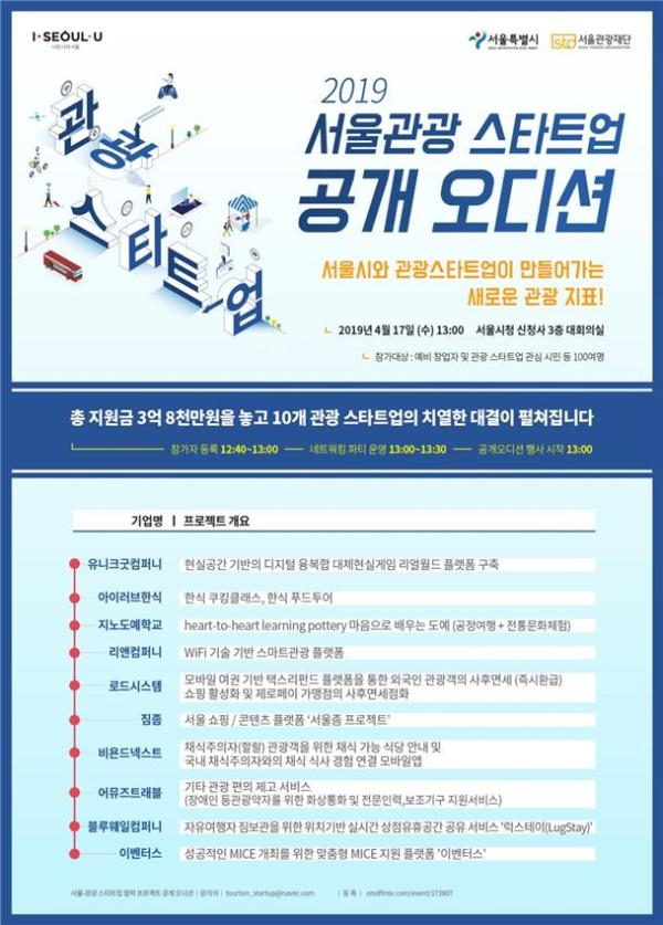 서울시와 서울관광재단은 2019년 한 해, 서울시와 함께 할 관광 스타트업 10개사를 선정하고, 본격 지원에 나선다.