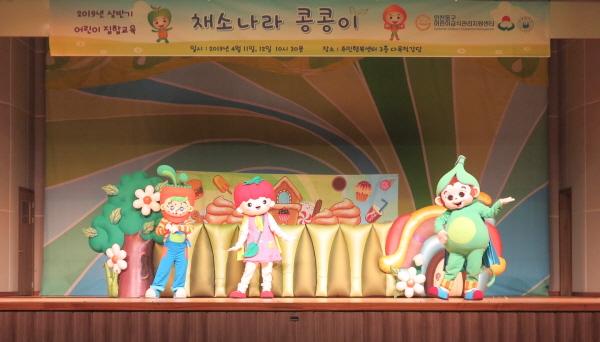 공연은 채소나라에 살고 있는 콩콩이와 채소친구들이 신선한 채소와 과일을 구하러 떠나는 모험이야기로 아이들의 눈높이에 맞춰 불량식품 대신 건강한 식품을 먹자는 내용을 인형극으로 구성했다.