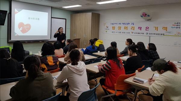 이번 부모교육은 인천서부교육지원청과 연계, 부모교육 전문가로 활동 중인 강사를 초빙해, 가족이 함께하는 밥상머리 교육을 통해 자녀에게 정서적 안정, 타인을 배려하는 기본적인 인성을 심어주는 것을 목표로 진행됐다. 주제는 밥상머리 교육이란?, 실천하는 10가지 밥상머리 교육 이해, 방해요소 없이 성공하는 밥상머리 교육, 우리 가족의 행복한 가족계획 세우기 등이다.