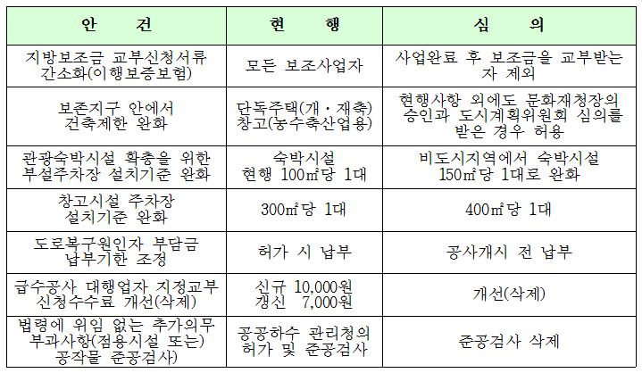 문화재 보존지구 안에서 건축규제 완화 등 7건 수용