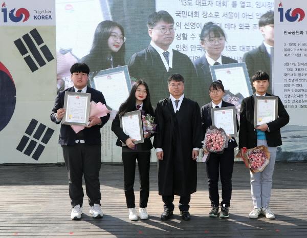 임정수립 100주년 기념식에서 대상 수상 학생 시상 및 낭독
