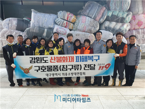 대구시 의용소방대연합회는 강원도에서 발생한 산불 피해 주민들을 위해 지난 4월 11일 2,400만원 상당의 침구류를 전달했다고 밝혔다.