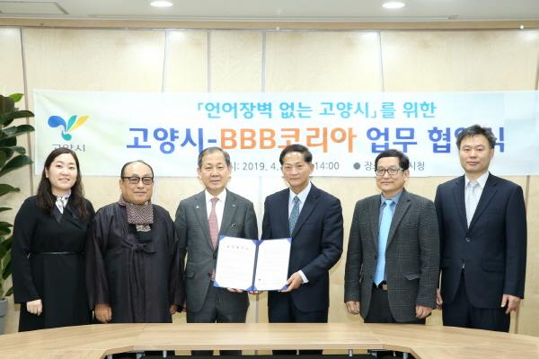 고양시는 지난 12일 비비비코리아와 언어장벽 없는 고양시 만들기 공동사업의 일환으로 외국어 통역서비스 업무협약을 체결했다.?