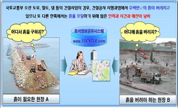 토석정보공유시스템은 공공 공사현장에서 발생하는 불용토사 등 토석자원 정보를 등록·관리해, 토석이 필요한 현장과 불필요한 현장을 연계함으로써 토석의 구매·폐기 비용 등 관련예산을 절감토록 하기 위해 2004년부터 구축되어 운영 중이다.