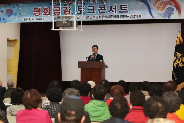 민주평화통일자문회의 인천동구협의회는 지난 15일, 동구노인복지관에서 자문위원 및 지역주민 70여명이 참여한 가운데 ‘4.27. 판문점선언 1주년 기념 평화공감 토크콘서트’를 개최했다.