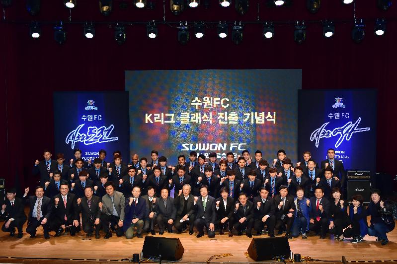 수원FC는 지난 8일 오후 수원 장안구민회관 한누리아트홀에서 구단주인 염태영 수원시장과 김춘호 수원FC 이사장을 비롯해 성인팀 및 유소년 선수단, 서포터스, 축구 관계자 등이 참석한 가운데 리그 진출 기념식을 개최했다.