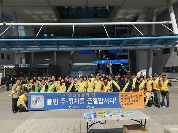 익산시는 4월 안전점검의 날을 맞아 16일 익산역 광장에서 박철웅 부시장과 대한적십자사 익산지구, 한국전기안전공사 익산지사 등 민간단체와 유관기관 관계자 60여 명이 참석한 가운데 안전무시관행 근절‘안전다짐대회 캠페인’을 실시했다.