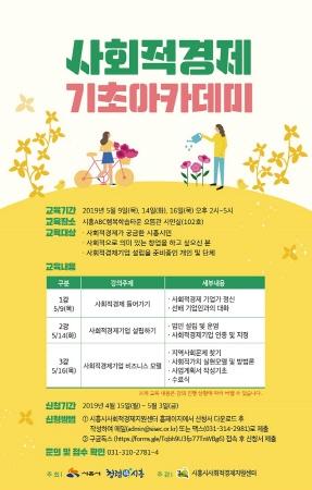 시흥시는 사회적경제에 대한 인식을 높이고 사회적경제기업 운영의 기초를 공유하기 위한 ‘2019년 사회적경제 기초아카데미’ 교육생을 모집하고 있다.