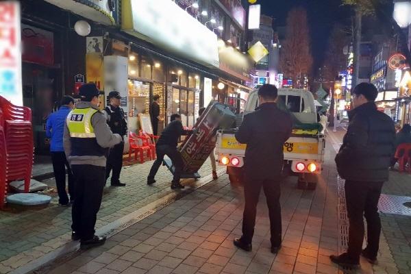 무분별하게 설치돼 도시미관을 저해하고 시민 통행에 불편을 주는 불법유동광고물에 대해 관·경 합동으로 집중단속을 실시한 것이다.