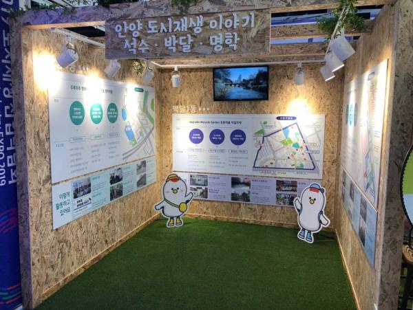 안양8동 명학마을, 석수2동 행정복지센터 일원, 박달1동 정원마을 등을 대상으로 추진하는 도시재생뉴딜사업과 이들 지역에 개설한 도시재생학교 등을 사진과 판넬, 리플렛 등을 활용해 소개함은 물론, 도시재생 포토존도 설치했다.