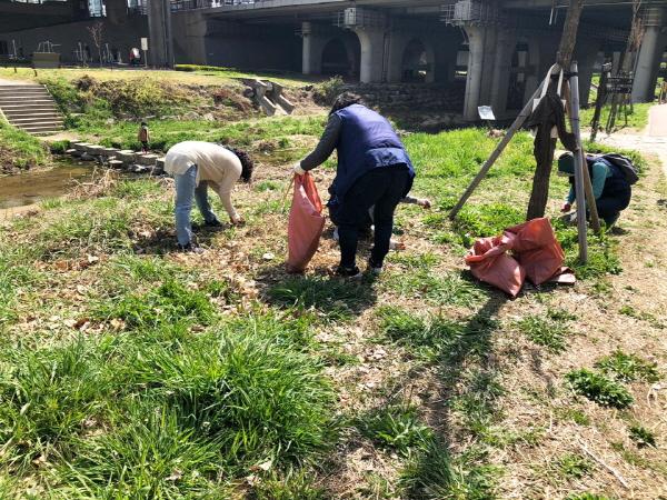 참가자들은 신정교부터 대림역 구간에 걸쳐 산책로의 쓰레기와 오물을 제거하고 주민편의시설 주변을 청소했다.