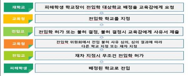 이때, 전입교 학교장이 교육과정 이수 등을 이유로 전입학을 불허하면 피해학생이 전입학에 어려움을 겪었으나, 이번 개정으로 그 절차가 개선되어 전입학이 가능하게 됐다.