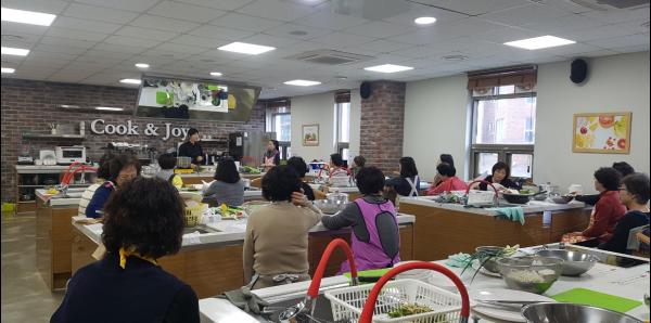 최근에는 골다공증에 좋은 연근과 제철 식재료를 이용한 냉이바지락 연근전과 된장덮밥으로 갱년기 여성의 면역력 향상과 빈혈예방에 도움 되는 조리실습을 진행하기도 했다.