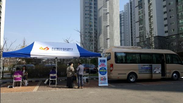 행복버스 차량을 이용한 찾아가는 이동형 치매조기검진사업은 치매의 조기 발견 및 예방을 위해 치매안심센터 전문상담인력이 우리 동네 구석구석 찾아가는 서비스로, 만60세 이상 관내 주민이면 누구나 치매선별검사 및 치매예방 상담을 받을 수 있다.