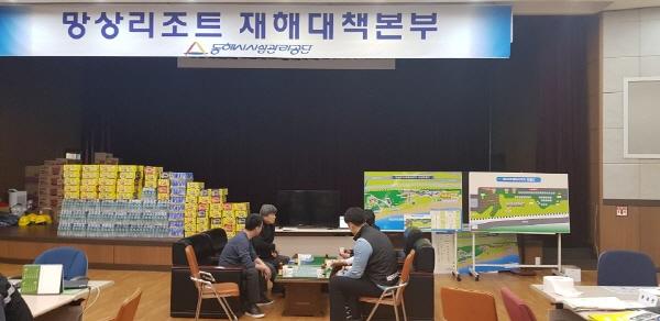 구 도시관리공단은 강원 산불피해로 동해시시설관리공단에서 운영하는 망상오토캠핑리조트 소실 등 큰 피해를 입은 아픔을 공유하며 생활용품을 전달했다.
